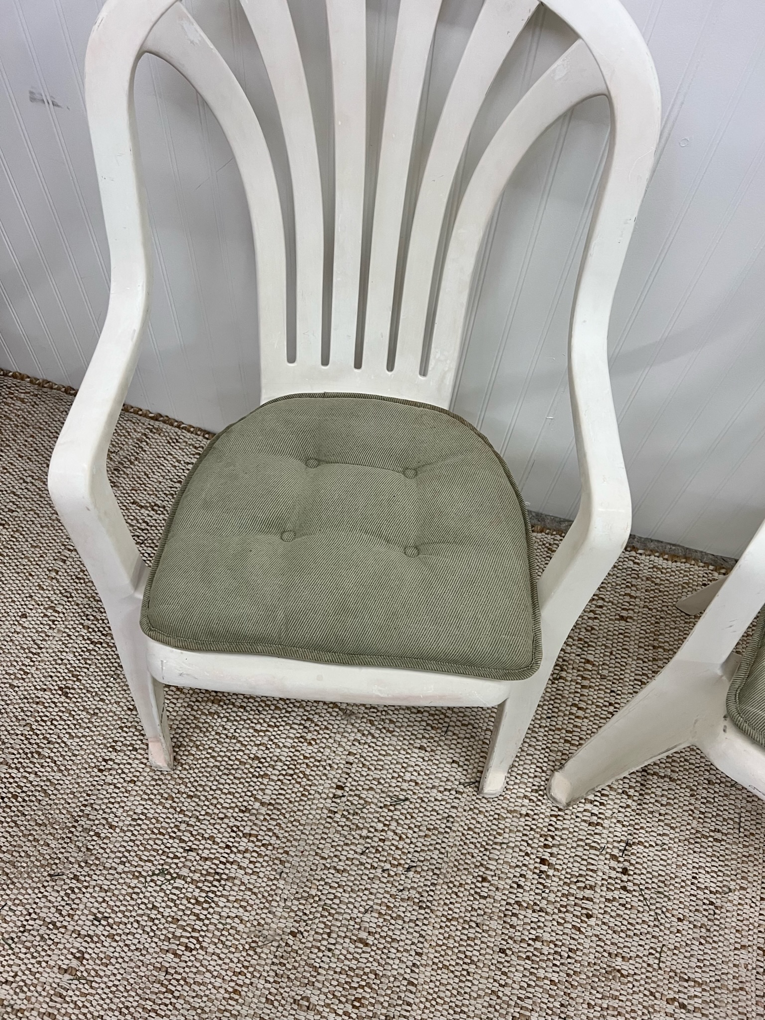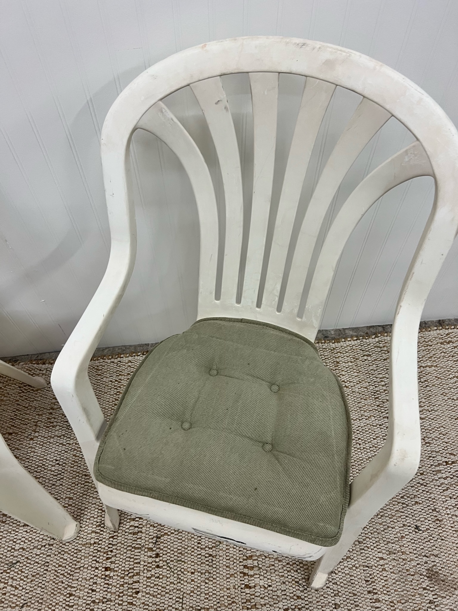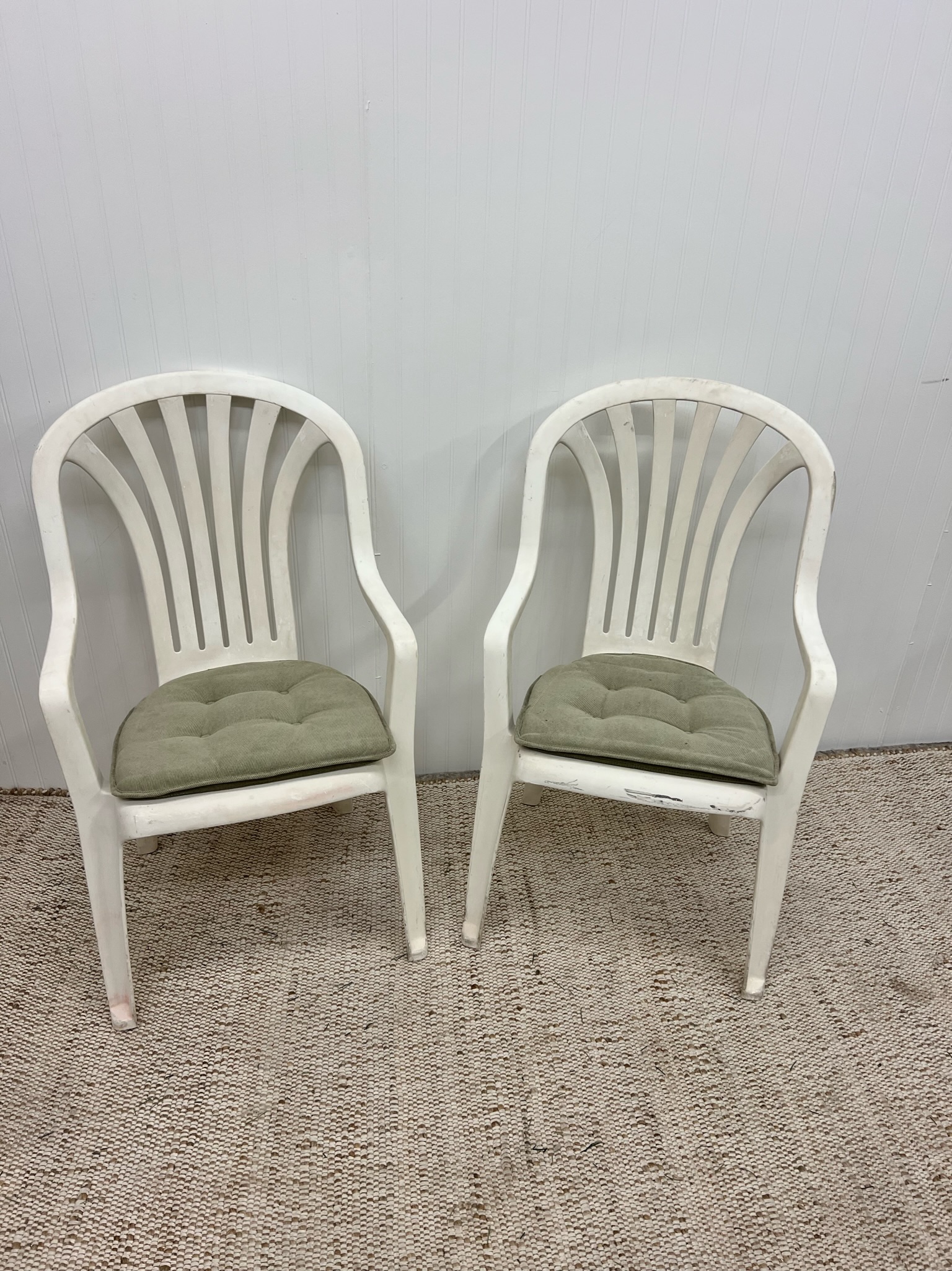 (2) Cushioned Plastic Patio Chairs – These chairs are in good condition overall, has signs of regular use. There are no cracks or breaks in the plastic.
