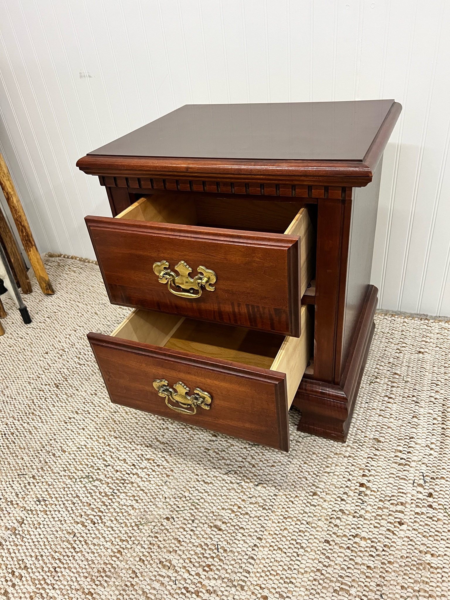 2 Drawer Wooden Nightstand – A Timeless Addition to Your Bedroom: This nightstand is in excellent condition, combining durability with elegance. Measuring 20” x 16” x 23”, it’s the perfect size for any space. Its two spacious drawers offer ample storage, making it as functional as it is stylish. A classic piece to elevate your bedroom decor!